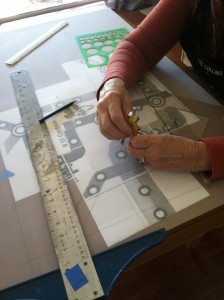 There’s always a lot of preliminary work that goes into our projects. Most of that happens in the studio so the homeowner and designer don’t get to see that. In this case, the map needed to be cropped and re-sized so it would focus on the green line.