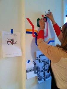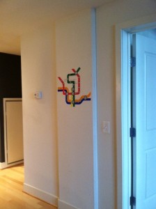 This week we worked on a mural of the DC metro map. The map was originally designed by graphic designer Lance Wyman in the mid-1970’s. The interesting fact is that he also got to re-design the map with updated information and the proposed future routes. The new map debuted in March of 2012. So painting the mural was sort of timely.