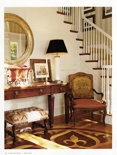 Hand painted foyer floors have always been a favorite for me. They add so much interest and presence to a space that is the introduction to your home. This foyer was painted for Skip Sroka’s house and published with Traditional Home.