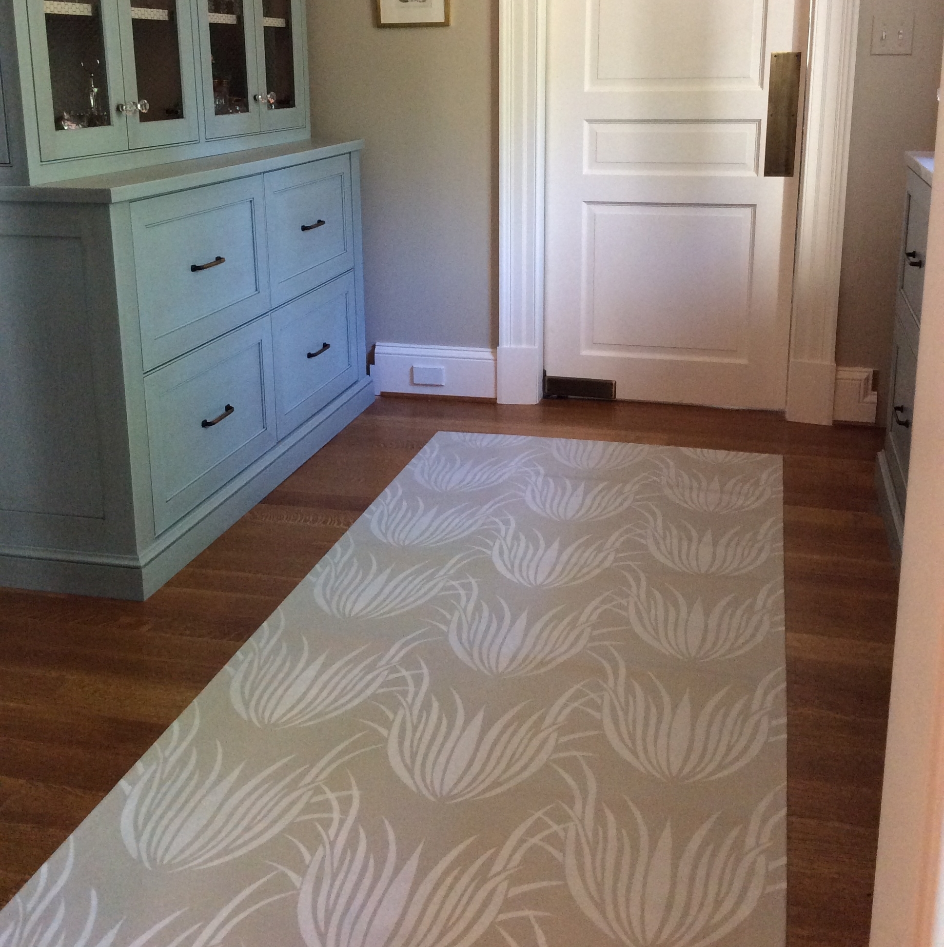 You might recognize this one from the 2016 DC Design House with Aidan Design. Floorcloths are so hard wearing, we were excited to test it out with the hundreds of house tours. The floorcloth left the DC Design House in beautiful shape and now resides in a lovely home with an art collection that includes Sam Gilliam and Henri Matisse.