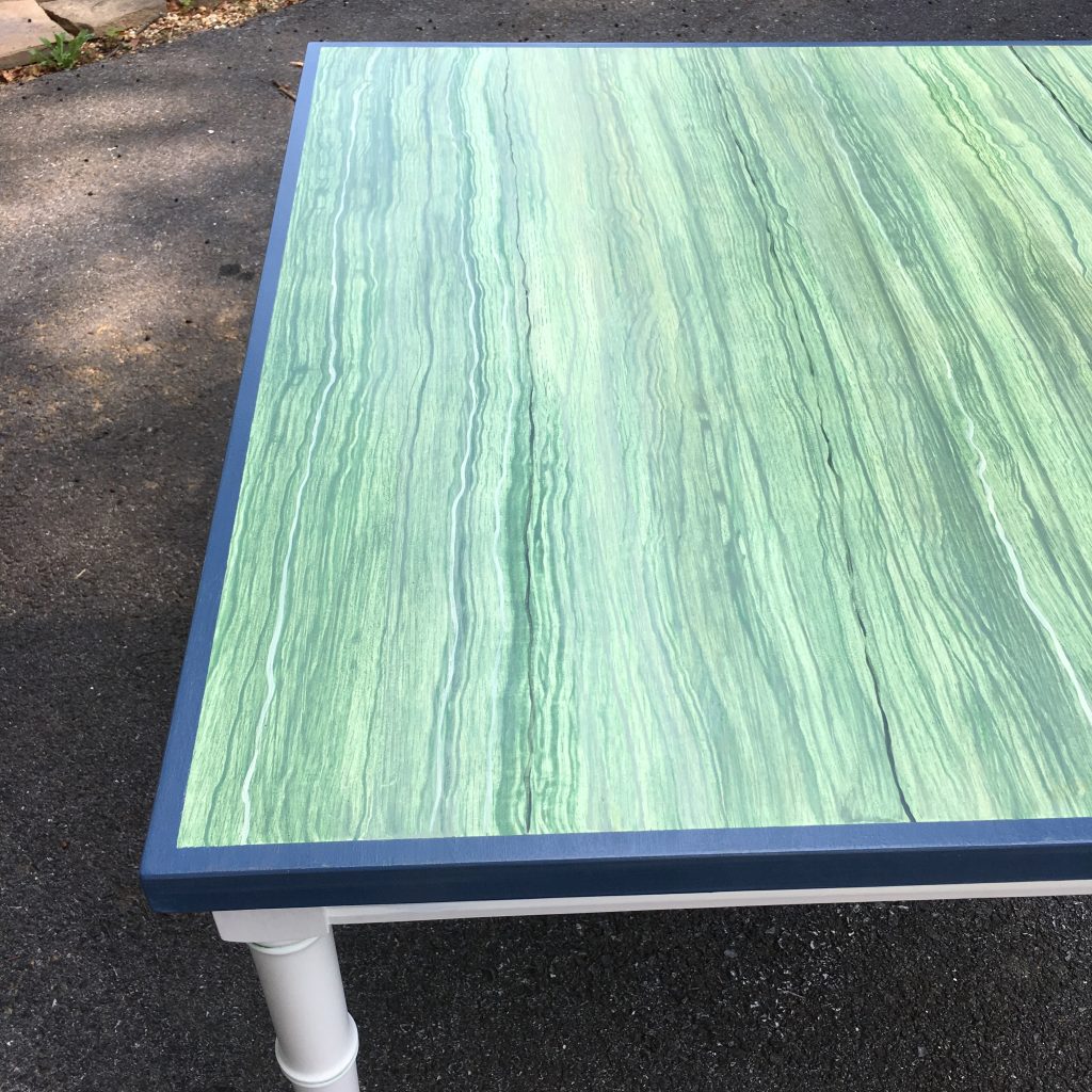 Lastly, our most recent DC Design House 2017 project, for Marika Meyer Interiors. The Lady’s Lounge has the perfect corner to tuck in a game table. We glazed the table legs to accent the bamboo details and applied a faux Verde Bamboo Granite finish to the top. So clever! In this photo from The Scout Guide, the table is staged for a game of Bridge with our custom playing cards.